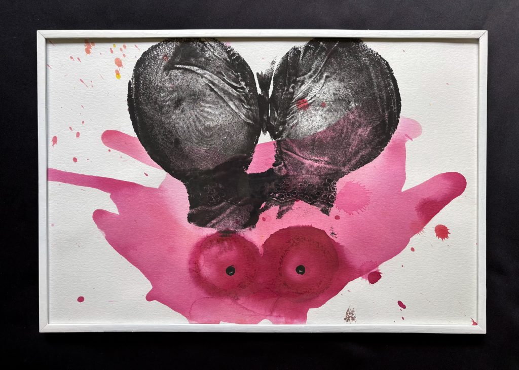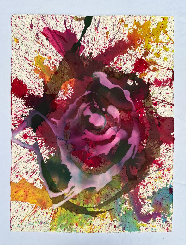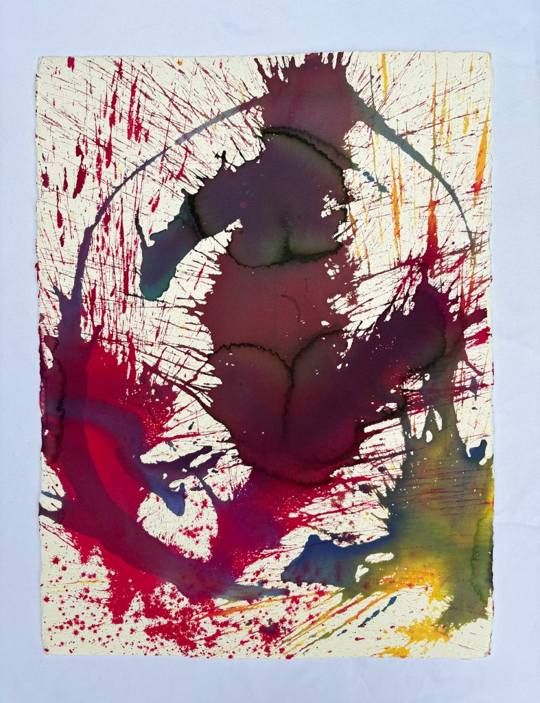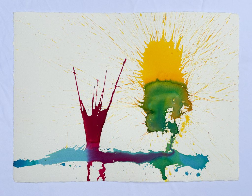 The Goldfish and the Clown; thrown dye on paper.