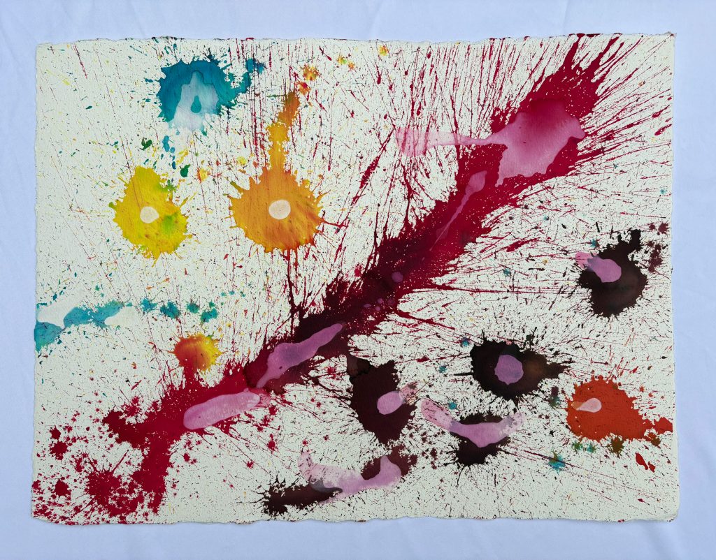 The Goldfish and the Clown, thrown dye on paper.